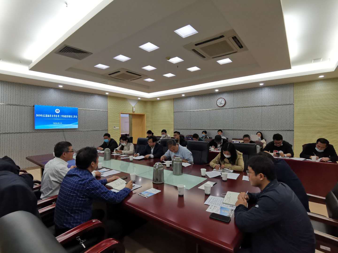 5月14日上午,我校2020年自考二学历招生工作会议在学校会议中心渤海厅召开。各助学学院分管继续教育工作负责人、各学院招生工作人员、继续教育学院相关人员共20余人参加会议。