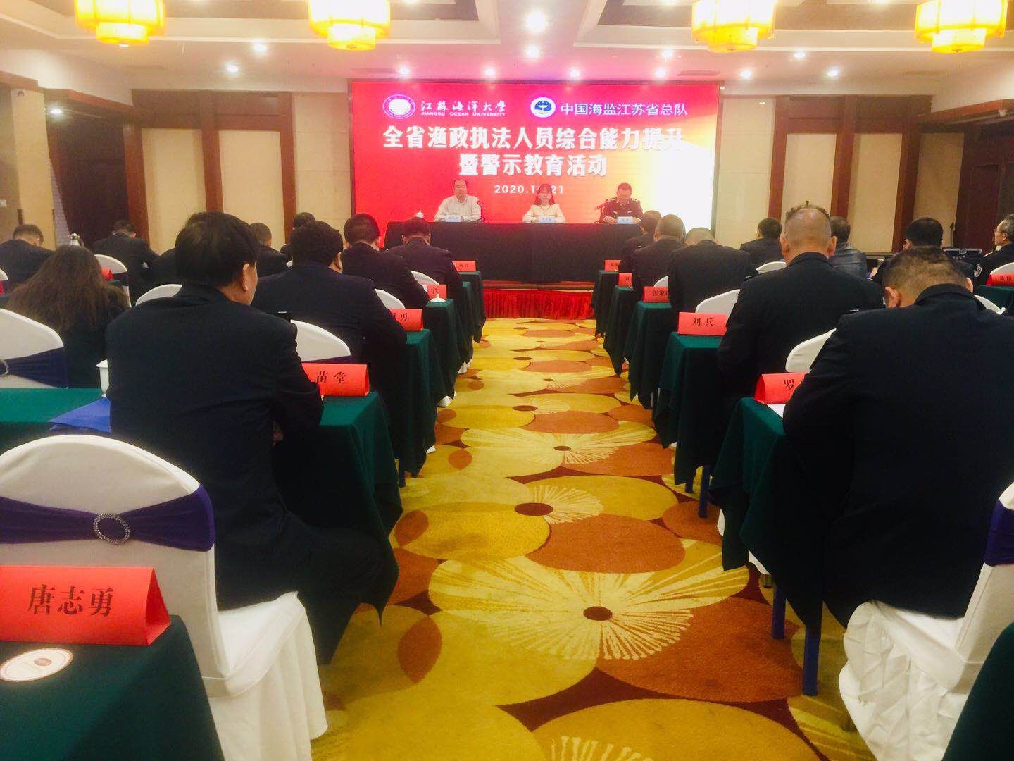 今年九月,江苏海洋大学受中国海监江苏省总队委托,成功举办了“长江流域重点水域禁捕执法综合能力提升培训”;金秋十月,我校再次接受中国海监江苏省总队委托,承办"全省渔政执法人员综合能力提升暨警示教育培训"。2020年10月21日上午,在连云港市明珠开君国际酒店举行开班典礼,学校党委常委、副校长金芙蓉出席并致辞,中国海监江苏省总队政委沈彦作了动员讲话,来自中国海监江苏省总队及全省渔业执法人员近九十位学员参加培训,继续教育学院院长杨凤和主持开班仪式。