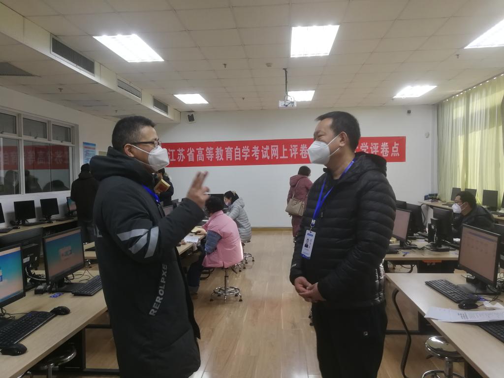 我校在评卷工作中注重加强组织领导,认真执行教育部和江苏省高等教育自学考试委员会下发的有关文件,制定严密的管理制度。评卷教师们不畏严寒,认真负责,严格遵守工作要求,统一评卷标准,做到“给分有理、扣分有据”,确保公平公正。继续教育学院质检人员随机抽检评卷情况,设定评卷误差参数,对问题卷依规进行处理,对评卷质量、进度进行实时监控,确保评卷工作平稳有序进行。