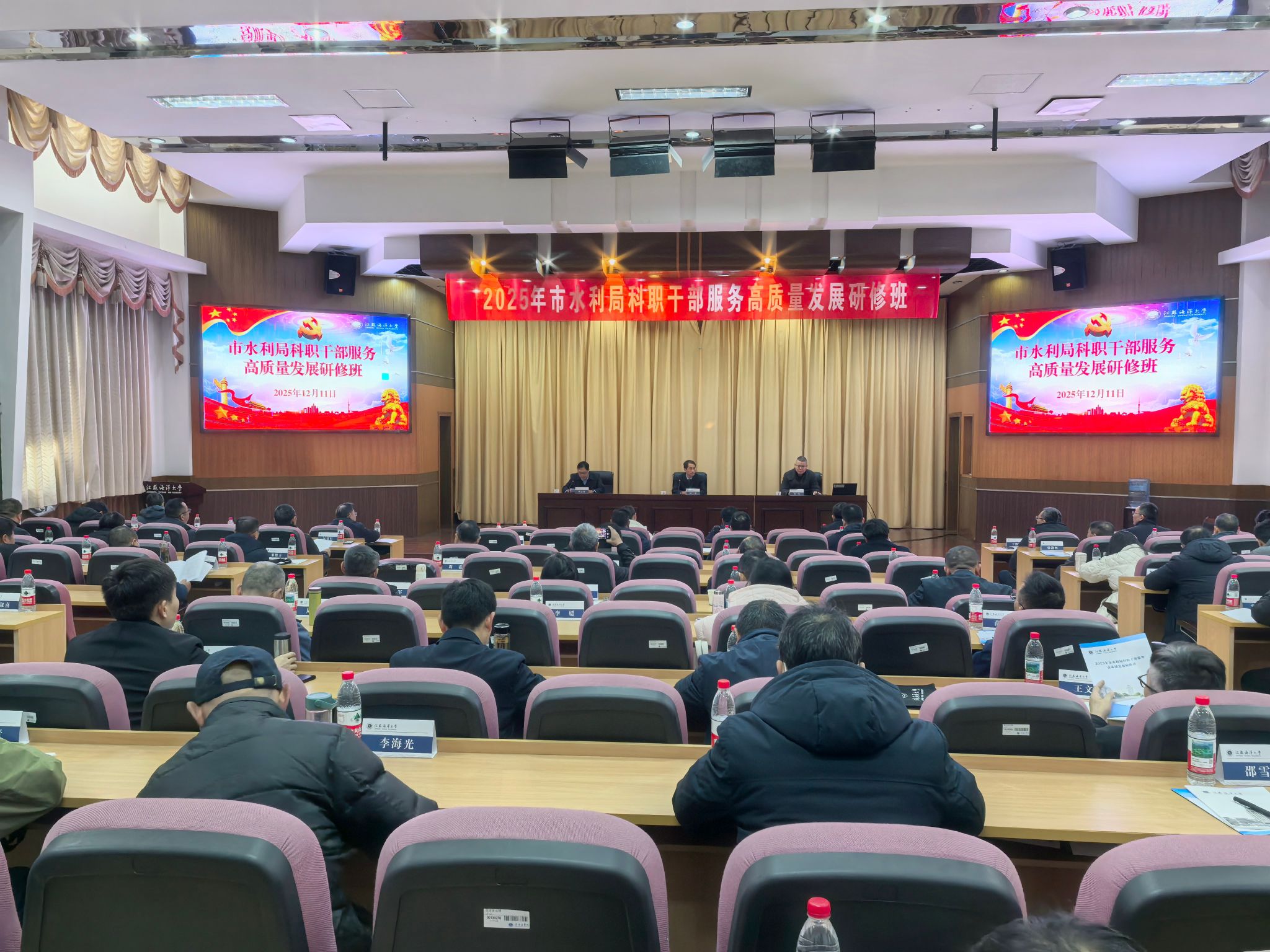 12月11日上午,2025年连云港市水利局科职干部服务高质量发展研修班在我校开班。继续教育学院院长舒伟出席开班仪式并致辞,连云港市水利局局长颜建作开班动员,连云港市水利局各部门科职干部94人参加培训。