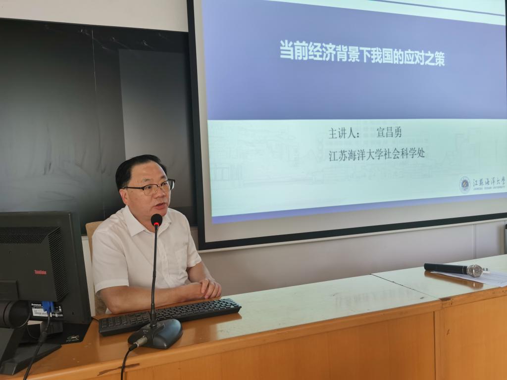 6月22日,我校社会科学处处长宣昌勇教授应继续教育学院邀请,为连云港市第六期转业军官进高校专项培训班做了题为“当前经济背景下我国的应对之策”的讲座。讲座由继续教育学院院长舒伟主持,培训班全体学员聆听了讲座。