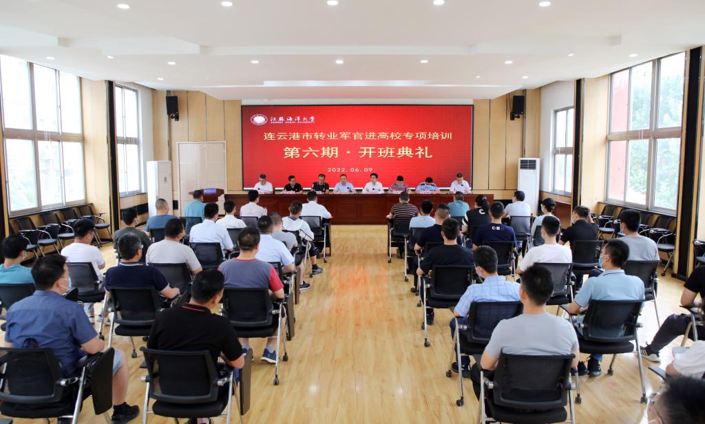 6月9日,连云港市第六期转业军官进高校专项培训开班典礼在我校通灌校区诚意楼举行。我校党委常委、副校长严云洋,连云港市退役军人事务局党组书记、局长王永士,党组副书记、副局长徐为怀,文法学院院长吴明忠,市委组织部、市财政局、市公安局等相关领导,本次培训班学员以及继续教育学院相关人员共50余人参加了典礼仪式。开班典礼由继续教育学院院长舒伟主持。