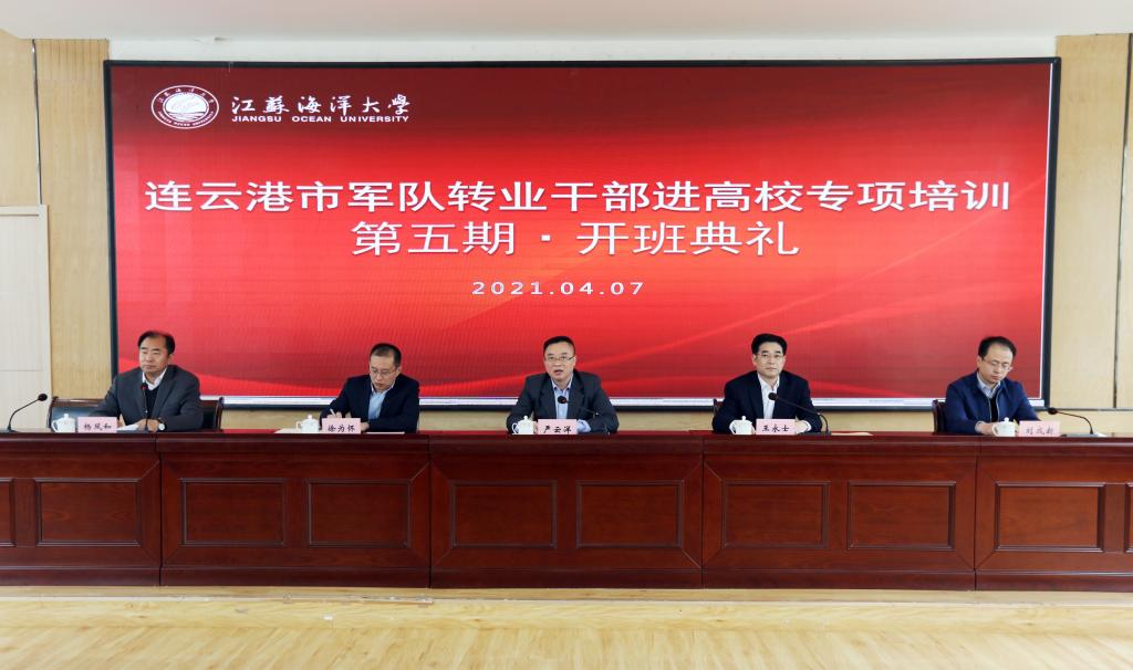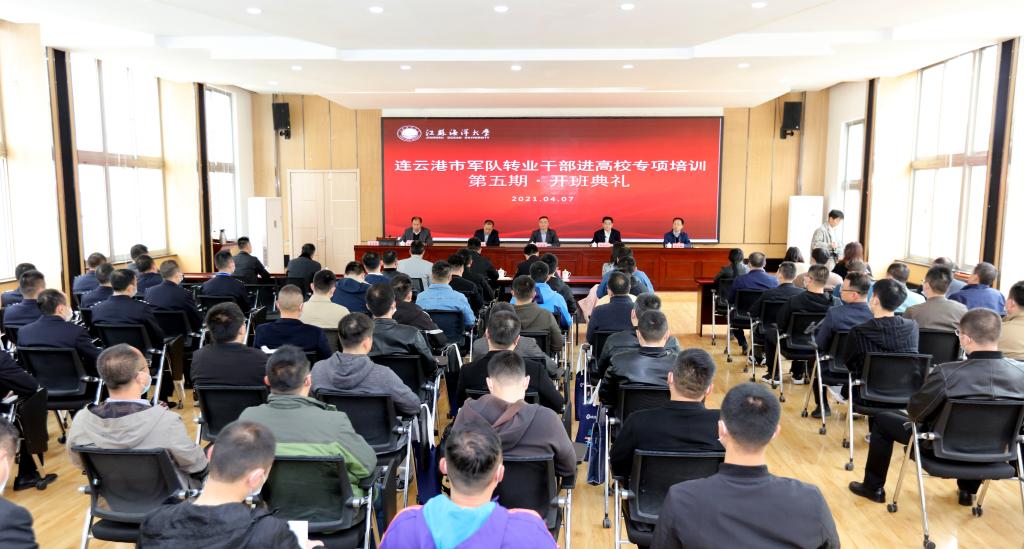 4月7日上午,连云港市第五期军转干部进高校专项培训开班典礼在我校通灌校区诚意楼报告厅举行。副校长严云洋,市退役军人事务局党组书记、局长王永士,市退役军人事务局党组副书记、副局长徐为怀,市委组织部干部队伍建设规划办公室主任刘成新以及市公安局、市财政局、市退役军人事务局的相关人员,培训老师、学员共80余人参加了典礼仪式。开班典礼由继续教育学院院长杨凤和主持。
