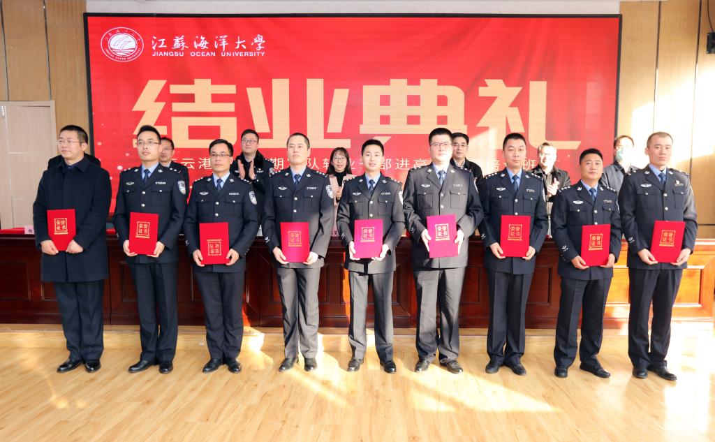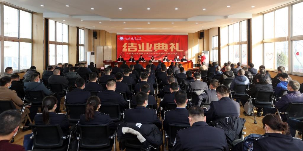 1月14日,连云港市第四期军队转业干部进江苏海洋大学专项培训班在我校通灌校区举行了结业典礼。副校长金芙蓉,市退役军人事务局局长王永士,市委组织部、市公安局等部门相关人员,以及培训老师、学员共120余人参加了典礼仪式。结业典礼由继续教育学院院长杨凤和主持。