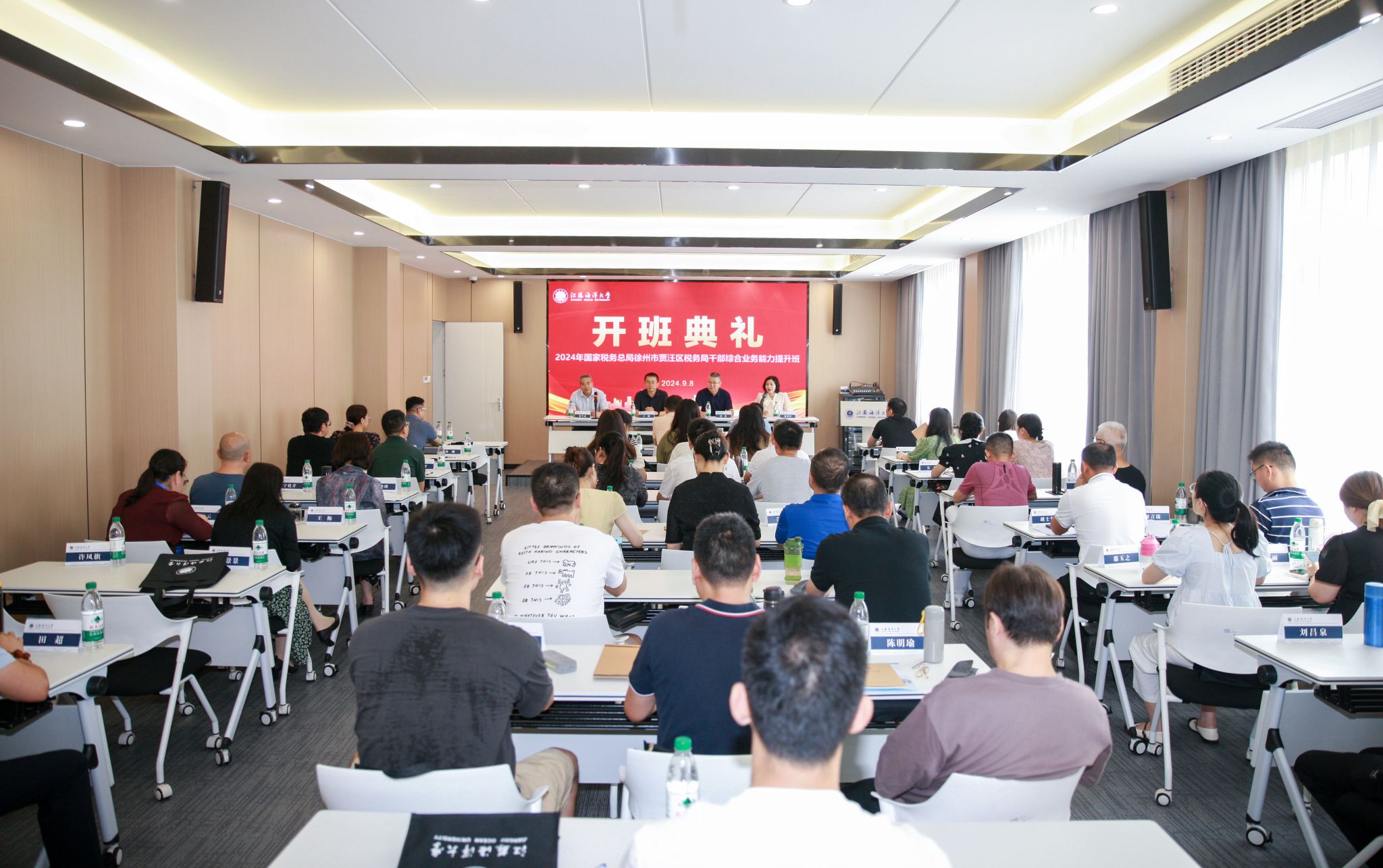 9月9日上午,徐州市贾汪区税务局干部综合业务能力提升班第一期班在我校顺利开班。徐州市贾汪区税务局党委委员、副局长王刚及学员共50人参加培训,继续教育学院院长舒伟出席开班仪式。